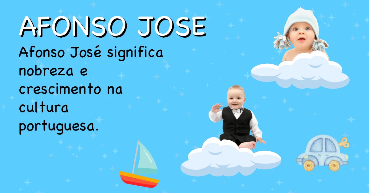 Quando combinados, "Afonso José" pode ser visto como um nome que carrega um significado de nobreza e prontidão, juntamente com a ideia de crescimento ou adição, refletindo uma personalidade forte e uma conexão espiritual. Historicamente, muitos reis e figuras importantes na história de Portugal e Espanha tinham o nome "Afonso", o que confere ao nome um peso simbólico de liderança e dignidade.