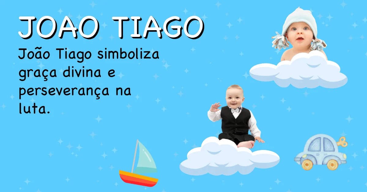 Significado dos Componentes: O nome "João" carrega a conotação de graça divina, refletindo uma bênção ou favor de Deus. "Tiago", por outro lado, simboliza a luta e a perseverança, dado que a figura de Jacó na Bíblia é conhecida por ter lutado com um anjo e por ser o pai das doze tribos de Israel.