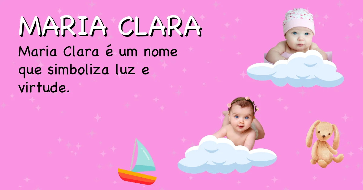 Origem da Nomeação: O nome "Maria Clara" é uma combinação de dois nomes que têm raízes profundas na cultura ocidental, especialmente na tradição cristã. "Maria" é um nome de origem hebraica, enquanto "Clara" tem raízes latinas.